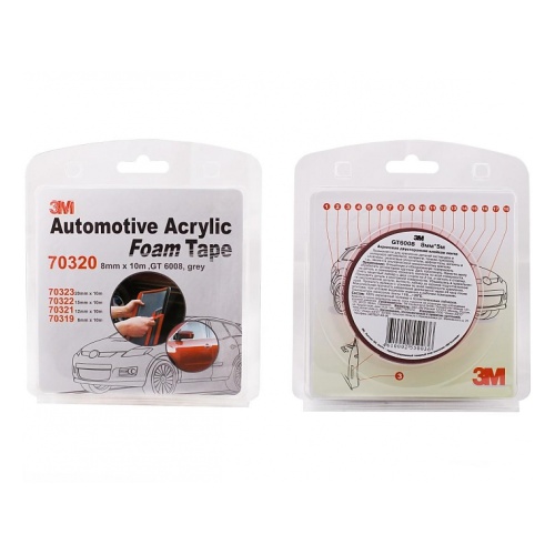 Двусторонняя клейкая акриловая лента GT6008F компании 3M™ представляет собой ленту серого цвета из вспененного акрилового клея с пластиковым лайнером. Лента GT6008 предназначена для крепления к кузовам автомобилей деталей из пластика (экстерьера и интерьера) - таких, как молдинги, вставки и др. GT6008 характеризуется высокой адгезией к большинству поверхностей автомобиля, высокой прочностью, долговечностью и высокой приспосабливаемостью к поверхностям, на которые она нанесена. Благодаря уникальным вязко-эластичным свойствам GT6008, нагрузка равномерно распределяется по длине клеящей ленты, что позволяет создавать надежное соединение. Вспененная акриловая лента произведена по специальной технологии и обладает высокоэффективным акриловым клеевым слоем. Для получения качественного соединения поверхности должны быть сухими, чистыми и, по возможности, плоскими. Для достижения наибольшей прочности приклеивания площадь соприкосновения поверхностей должна быть максимальной. Прочность соединения зависит от силы первоначального прижима при склейке. Для достижения наилучших результатов сила прижима при приклеивании должна быть от 10 до 50 Н/см² при температуре более 18ºС.