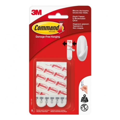 Клейкие полоски COMMAND, КОМПЛЕКТ 9 шт., средние, белые, 17021