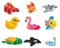 9 Видов игрушек:ДинозаврЗолотая рыбка Тропическая рыбкаДельфинУткаФламингоЧерепахаКитМодная лодка