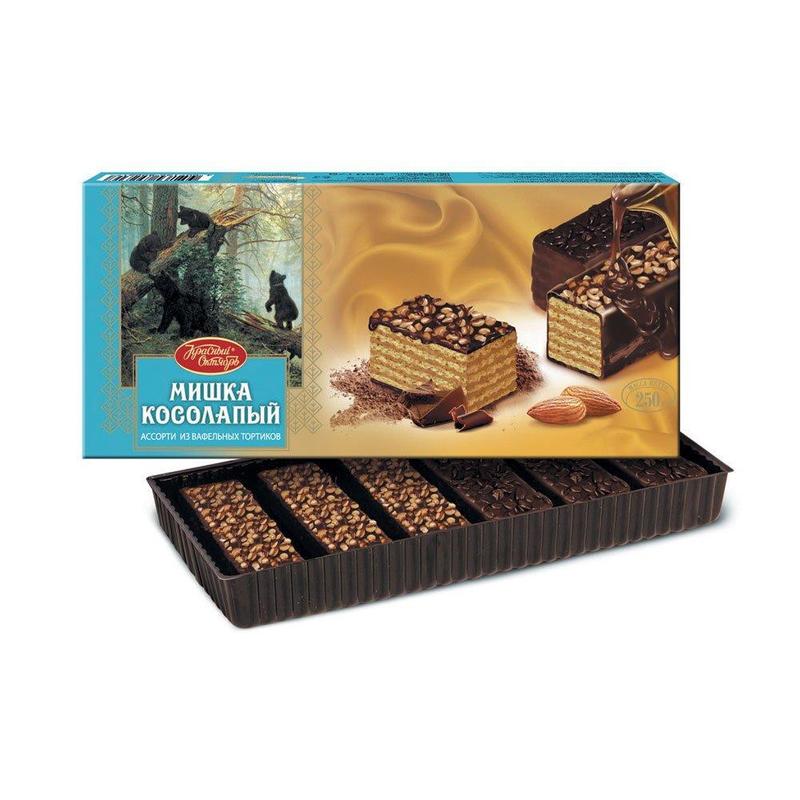 Торт вафельный «Мишка косолапый» 250 г — это порционный десерт, созданный из хрустящих вафель с орехово-сливочной прослойкой, покрытый тонким слоем шоколадной глазури. Посыпка в виде шоколадной крошки и дробленых миндальных орешков украшает вафельный торт и вносит во вкус пикантные акценты. Торт буквально тает во рту, оставляя яркое шоколадно-ореховое послевкусие.«Мишка косолапый» — лакомство, которое нравится и взрослым и детям. Оно идеально подходит для уютных и душевных чаепитий. Долгожданные гости или желание побаловать себя сладким угощением, ужин в кругу семьи или чашка кофе в послеобеденный перерыв в офисе, дополненные хрустящим тортиком, подарят приятные и радостные эмоции. Порция сладкого десерта станет источником дополнительной энергии, поможет восстановить силы и сконцентрировать внимание на важных задачах.Торт «Мишка косолапый» упакован в красивую картонную коробку с известной иллюстрацией медведей, а внутри порции уложены в пластиковый контейнер с ячейками, который предотвращает их прилипание друг к другу и способствует сохранению целостности и аккуратного внешнего вида.Замечательное лакомство станет отличным гостинцем для друзей, родственников, близких и коллег. Наслаждайтесь им дома, в офисе или на даче, создавайте лучшие моменты с любимым вафельным тортом.Состав: глазурь кондитерская (сахар, заменитель масла какао (частично гидрогенизированные растительные масла: рапсовое масло, пальмовое масло, антиокислители: лимонная кислота, токоферолы, концентрат смеси, лецитин подсолнечника), какао порошок, эмульгатор лецитин соевый, ароматизатор «Ваниль»), вафли листовые (вода питьевая, мука пшеничная хлебопекарная высшего сорта, меланж сухой яичный, эмульгатор лецитин соевый, соль, разрыхлитель гидрокарбонат натрия, масло подсолнечное рафинированное дезодорированное), сахар, масло кокосовое рафинированное дезодорированное, сухая молочная сыворотка, посыпка из кондитерской глазури (сахар, гидрогенизированные растительные жиры (пальмовые, пальмоядровые, кокосовые), какао-порошок, эмульгатор соевый лецитин), заменитель масла какао (растительные масла: частично гидрогенизированное пальмовое масло, частично гидрогенизированное рапсовое масло, антиокислители: лимонная кислота, токоферолы, концентрат смеси, лецитин подсолнечника), ядро ореха миндаля дробленое, глазурь молочная кондитерская (сахар, заменитель какао масла (частично гидрогенизированные фракции пальмового масла, сорбитан тристеарат, лецитин), какао-порошок, сухое цельное молоко, сухая молочная сыворотка, эмульгаторы: лецитин соевый, Е476, ароматизатор «Ванилин»), какао-порошок, короб (порошок плодов рожкового дерева), эмульгатор лецитин соевый, ароматизатор «Карамель тип Батткрскоч».Противопоказано при индивидуальной непереносимости белка молока и/или яичного белка.Возможно наличие незначительного количества семян арахиса, семян кунжута.Не подвергать воздействию прямого солнечного света.Вес: 250 граммТип упаковки: картонная коробкаСтрана производства: РоссияСрок хранения: 8 месяцев