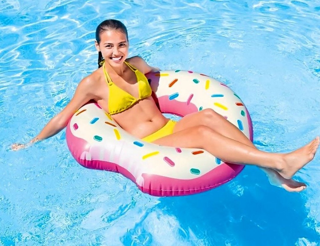 Надувной круг Пончик изготовлен из качественного и долговечного винила, толщиной 0,25 мм.