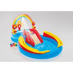 Надувной игровой центр с горкой "Радуга" Intex 57453, предназначен для купания детей (под присмотром взрослых). Игровой центр выполнен из качественных материалов и прослужит не один сезон. Яркий, оригинальный дизайн придется по вкусу детям и станет излюбленным местом для игр. Насос для накачивания можно приобрести в разделе "Насосы" (в комплект не входит).