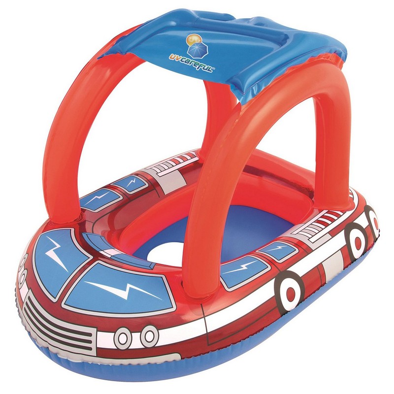Круг надувной с сиденьем и тентом Bestway «Пожарная машина» подарит комфорт и удовольствие от плавания.