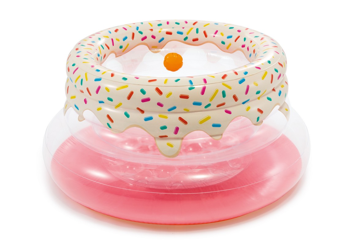 Надувной манеж Intex 48476 в виде пончика изготовлен из высококачественного винила, мягкие стенки и пол обеспечивают комфортное и безопасное нахождение вашего ребенка в нем, а встроенные внутри манежа мягкие кнопки со звуковым эффектом не дадут крошке заскучать.