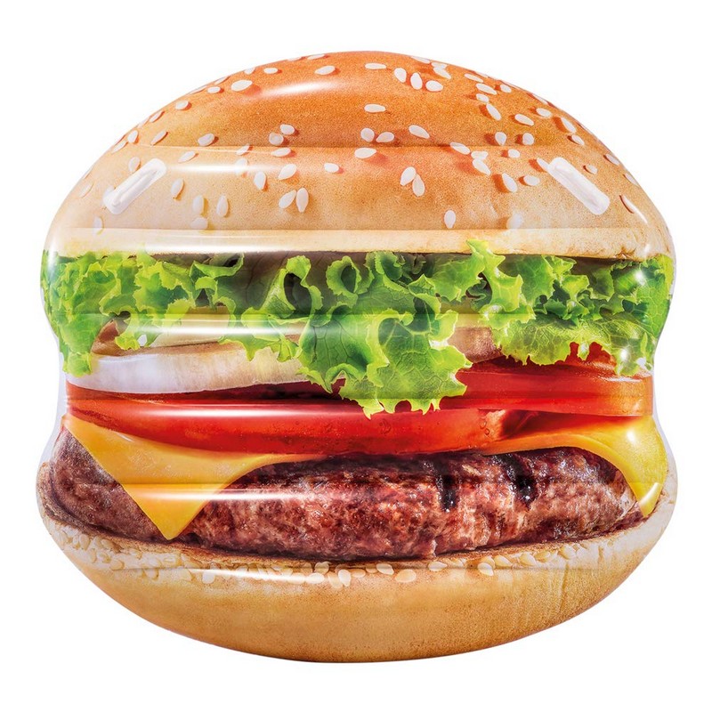Теперь все внимание во время отдыха на водоёме или у бассейна будет приковано только к вам, так как всем прохожим непременно захочется рассмотреть, как вы умудряетесь плавать на гамбургере. Именно этот популярный фаст-фуд напоминает надувной матрас с удобными ручками на корпусе.