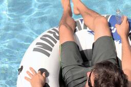 Очень удобный круг для игры в воде.Можно использовать как для игры в бассейне, так и водоёме.Имеются крепления в виде ручек, тросика по кругу.Таблетка-круг подходит для небольших путешествий по речке.Для комфорта есть надувная спинка и сетчатое дно.Размер круга 135 см позволяет удобно расположиться в нём.