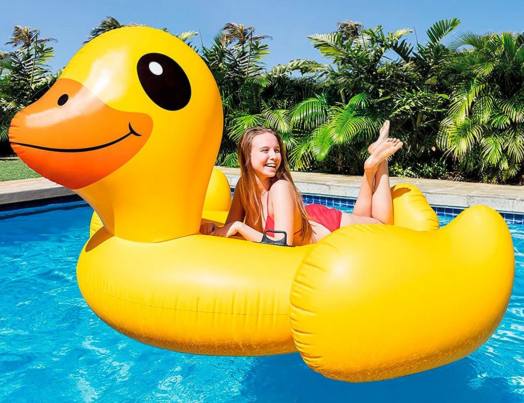 Надувной матрас-плот в виде большой желтой утки это хит последних нескольких сезонов! В жаркий летний день такой остров просто незаменим! Он очень вместительный, диаметр составляет 203 см. Конструкция плота состоит из двух надувных камер, что обеспечивает дополнительную безопасность во время плавания. Плот оснащен пластиковыми ручками, за которые можно удобно держаться, а также перемещать птицу. Надувные крылья и хвост защищают от падения в воду. Материал изделия не только красивый, но еще и прочный, толщина 0,35 мм. Он не скользит и не вызывает аллергии.