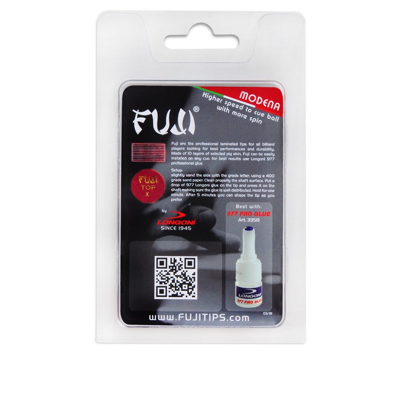 Многослойные наклейки Longoni Fuji производит один из старейших производителей бильярдного оборудования в мире - итальянская компания Norditalia. Наклейки изготовлены из десяти слоев спрессованной свиной кожи. Предлагаются в двух диаметрах - 13 и 14 мм - а также в трех градациях жесткости: мягкие, средние либо жесткие (Soft, Medium и Hard соответственно). В России марка Longoni традиционно популярна у поклонников русской пирамиды.