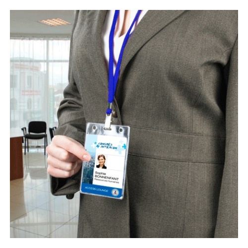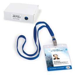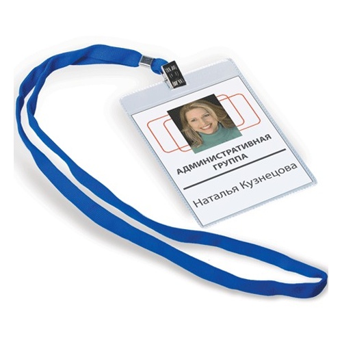 Бейдж ПВХ 120x87 мм вертикальный, на синей ленте 45 см, 10 шт в упаковке 231906СН