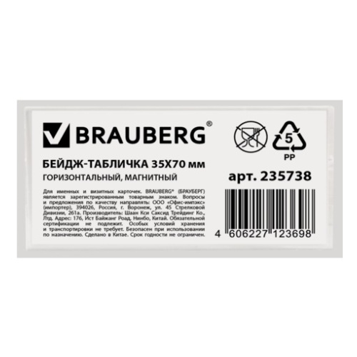 Бейдж-табличка Brauberg 35х70 мм горизонтальный, магнитный 235738СН