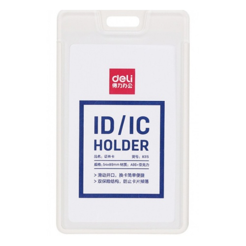 Бейдж для пропуска Deli 8315white 54х89мм вертикальный без крепления акрил/пластик белый 8315WHITE