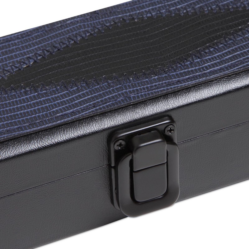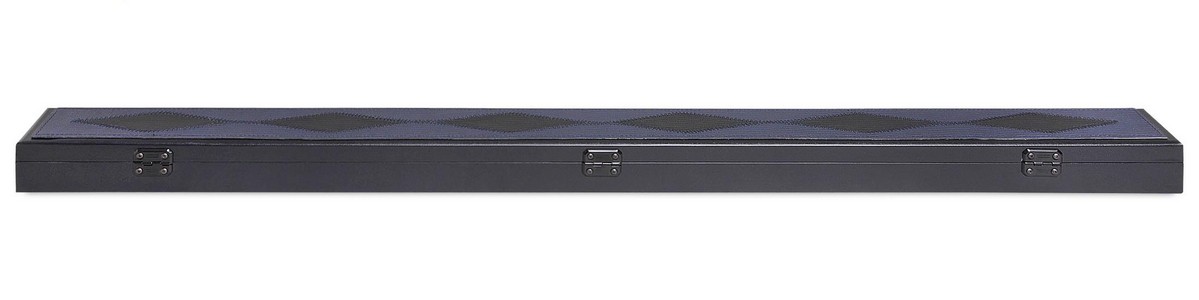 Кейс способен защитить кий от случайных ударов и царапин, от дождя, снега, солнца и мороза. Внутри кейса имеется три отделения: для шафта и турняка двусоставного кия и для аксессуаров. Крышка кейса крепится на трех прочных петлях. Закрывается на два металлических замка. Для транспортировки установлена широкая и удобная выдвижная рукоятка.