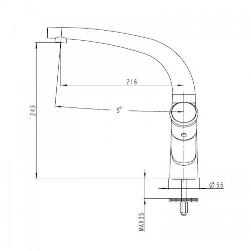 - Длина излива 216 мм