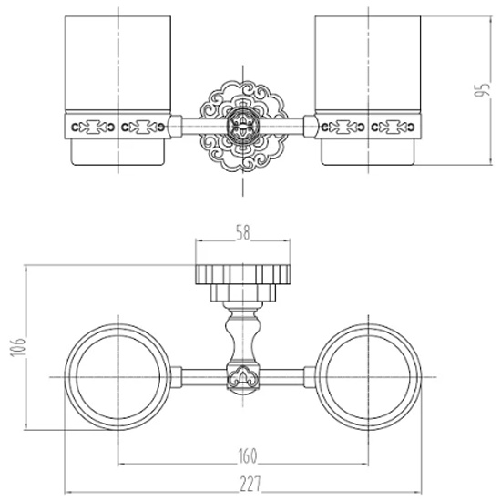 Держатель со стаканами настенный, двойной MILACIO MC.904.SL, серебро