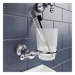 Стакан одинарный Iddis Retro RETSSG1i45 для зубных щеток и пасты, стиль ретро. Модель имеет настенный способ крепления. Пластиковая проставка AntiSlip между металлической частью и стеклом. Материал: сплав металлов, матовое стекло. Размер: 133х99х96 мм.