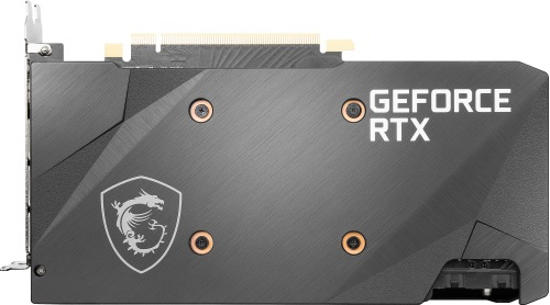 Видеокарта MSI GeForce RTX 3070 Ventus 2X OC ориентирована на максимальную скорость работы, поэтому в ее конструкции нет ничего лишнего. Охлаждение обеспечено кулером с двумя мощными вентиляторами (они имеют лопасти двух типов, оптимально ускоряющие и направляющие воздушный поток). Карта выполнена в лаконичном дизайне, что позволяет без проблем вписать ее в компьютерную сборку любого типа. Задняя пластина имеет матовую отделку. Эта часть нужна для дополнительного усиления устройства и увеличения его длины.