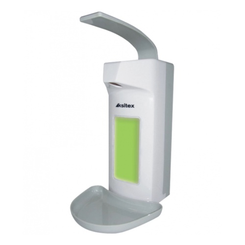 Диспенсер для жидкого мыла KSITEX, наливной, с локтевым приводом, белый, 1 л, с поддоном, DES-1000 604433