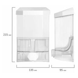 Диспенсер из прозрачного пластика объемом 1 л обеспечивает высокую гигиеничность. Выдача мыла осуществляется экономичными порциями. Сочетается с расходными материалами других производителей. Имеется окно для контроля уровня мыла. Закрывается на пластиковый ключ. Размер: 215х135х95 см. Крепежные материалы в комплекте.