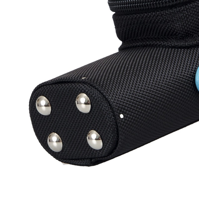 На дне с внешней стороны тубуса имеются ножки из стали. Вы можете ставить тубус на пол, не боясь испачкать или затереть материал. Благодаря ножкам, чехол устойчив в вертикальном положении.