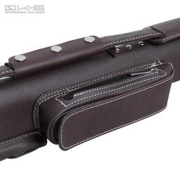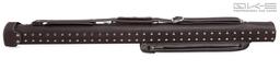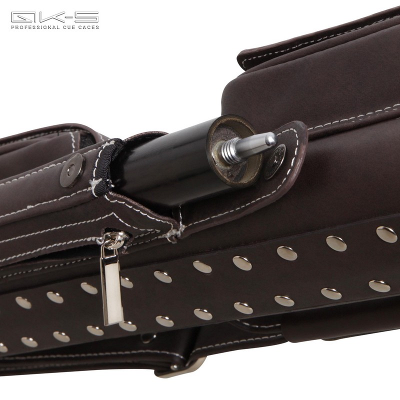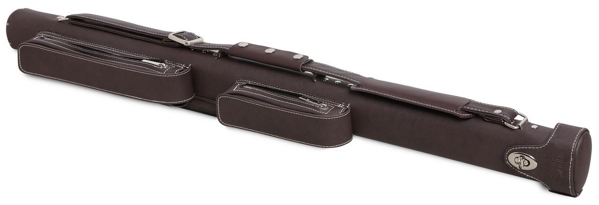 Эффектный тубус из прочного водоотталкивающего винила однотонного черного цвета. Вопреки своему лаконичному внешнему виду и компактным размерам тубус имеет серьезные преимущества в функциональном оснащении. Помимо наличия основных отделений для частей двусоставного кия для русской пирамиды можно отметить и отделение для удлинителя, и два наружных кармана для всевозможных аксессуаров, необходимых для игры в бильярд и не только.