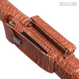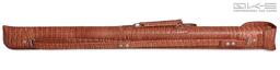 Уникальный тубус для одного двусоставного кия для русской пирамиды. Такое изделие способно покорить сердце игрока, увлекающегося стилистикой Дикого Запада. Выполненный из прочного винила с имитацией кожи аллигатора, тубус стилизован под чехол для орудия коренного жителя Северной Америки. В конструкции предусмотрено все самое важное: отделение для шафта, отделение для турняка, наружный карман для мелких бильярдных аксессуаров и приспособления для транспортировки: ручка и наплечный ремень. Все по делу - ничего лишнего.