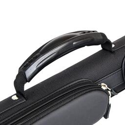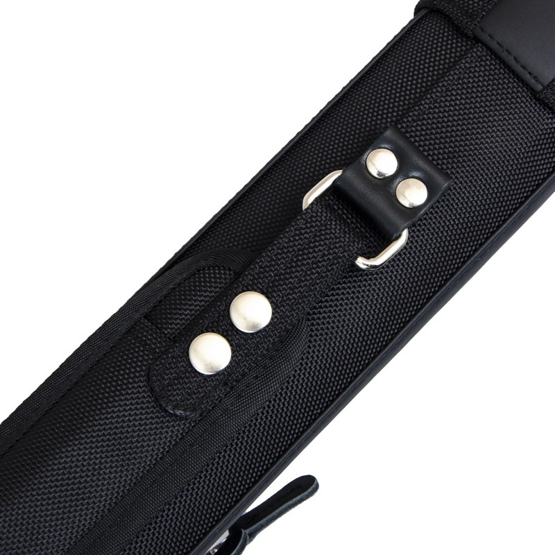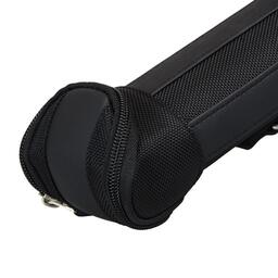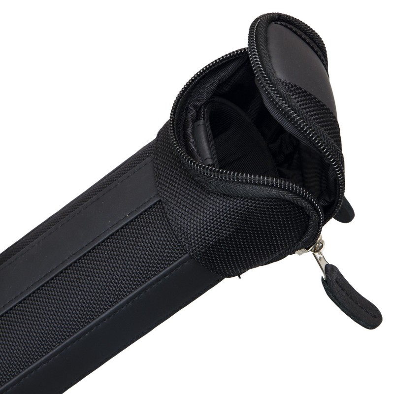 Дополнительные удобства:Есть ручка сбоку и наплечный ремень с регулировкой длины. На ремне есть специальная вставка для комфортной носки на плече. Каждая часть кия хранится в отдельном отсеке. С внешней стороны имеются карманы для аксессуаров и удлинителя. Большой карман внутри снабжен дополнительной молнией для надежной фиксации.