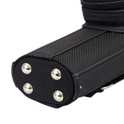 Фурнитура: На дне с внешней стороны тубуса имеются ножки из стали. Вы можете ставить тубус на пол, не боясь испачкать или затереть материал. Благодаря ножкам, чехол устойчив в вертикальном положении.Язычки на застежках также выполнены из стали.