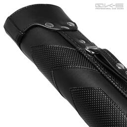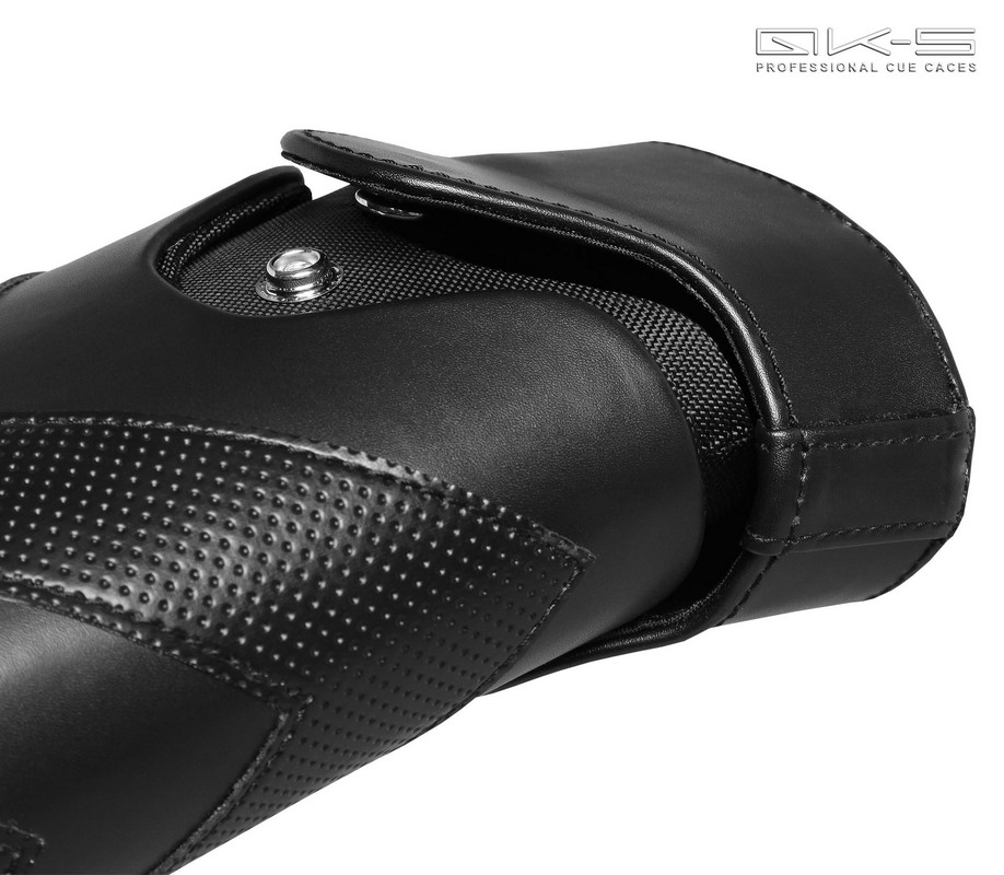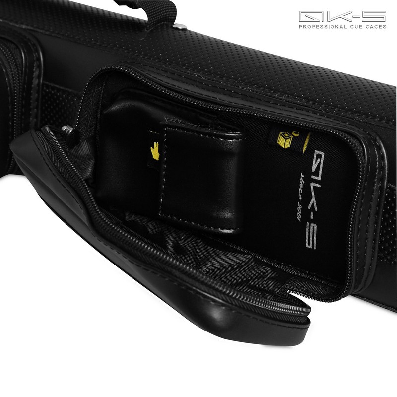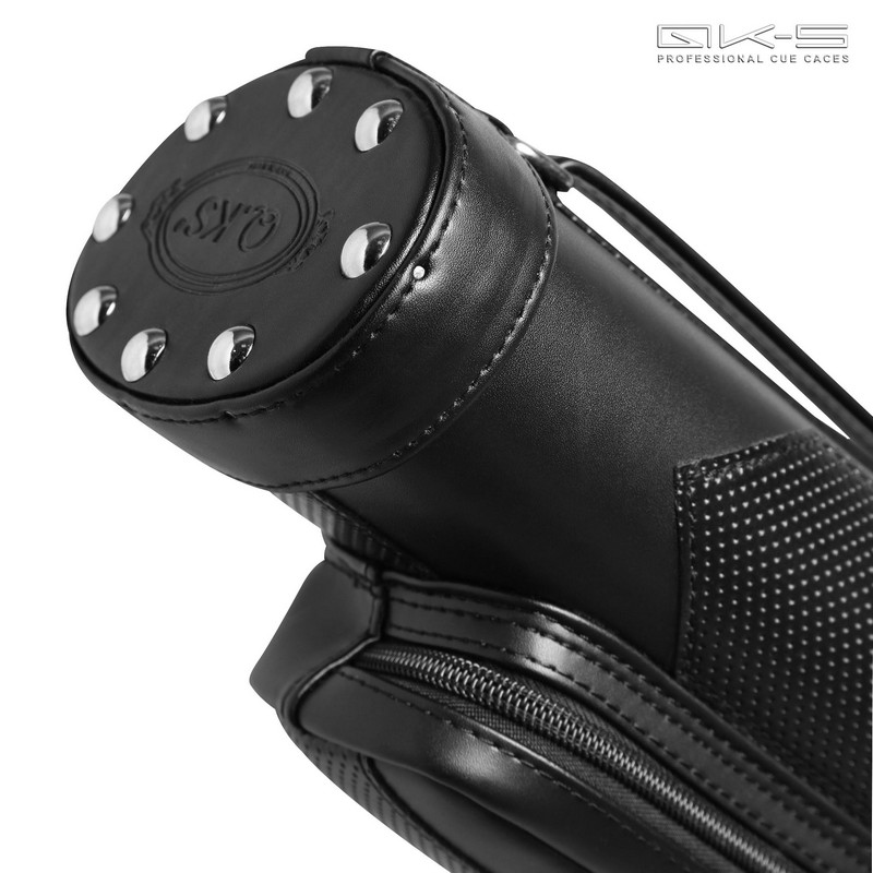 Тубус черного матового цвета с декоративноми вставками из перфорированного винила и с объемным металлическим логотипом бренда QK-S на фронтальной части позволит игроку поддержать собственный стильный образ, выдержанный в строгих классических тонах.
