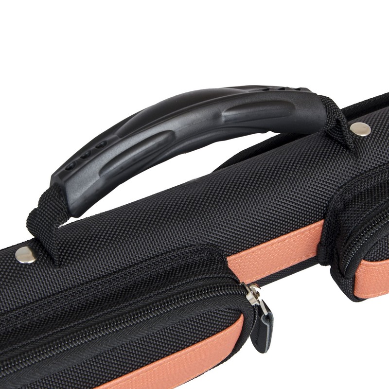 Дополнительные удобства:Для комфортной носки предусмотрена ручка и наплечный ремень с регулировкой длины.Каждая часть кия хранится в отдельном отсеке. С внешней стороны имеются карманы для аксессуаров и удлинителя. Карман для удлинителя снабжен дополнительной молнией внутри для надежной фиксации.