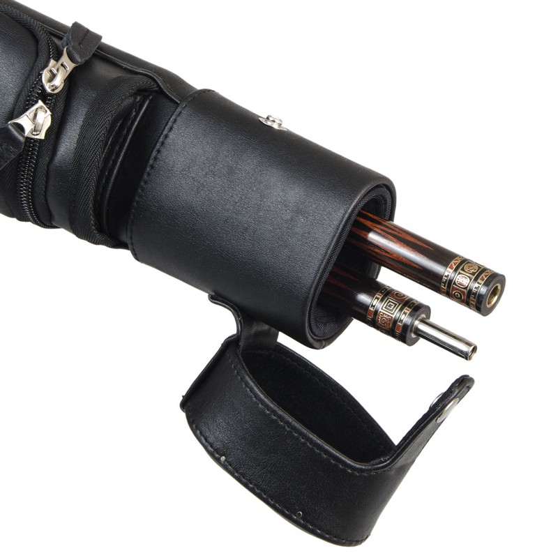 Дополнительные удобства:Есть ручка сбоку и наплечный ремень с регулировкой длины. На ремне есть специальная вставка для комфортной носки на плече.Каждая часть кия хранится в отдельном отсеке. С внешней стороны имеются карманы для аксессуаров и удлинителяБольшой карман внутри снабжен дополнительной молнией для надежной фиксации.