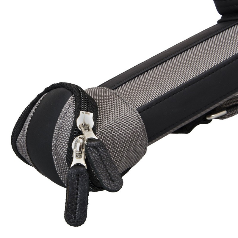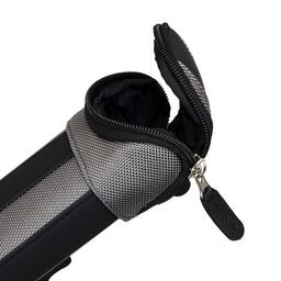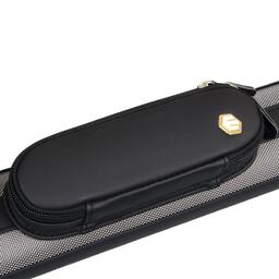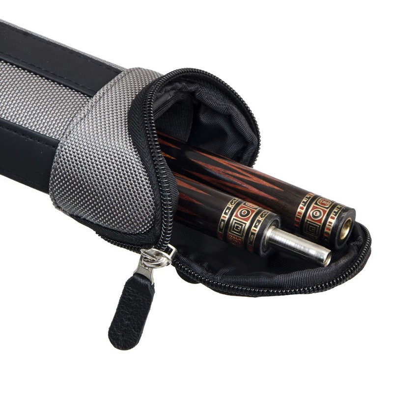 Дополнительные удобства:Есть ручка сбоку и наплечный ремень с регулировкой длины. На ремне есть специальная вставка для комфортной носки на плече. Каждая часть кия хранится в отдельном отсеке. С внешней стороны имеются карманы для аксессуаров и удлинителя. Большой карман внутри снабжен дополнительной молнией для надежной фиксации.