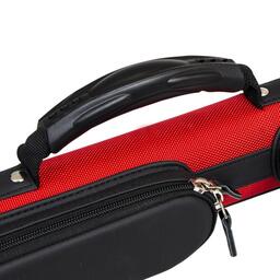 Дополнительные удобства:Есть ручка сбоку и наплечный ремень с регулировкой длины. На ремне есть специальная вставка для комфортной носки на плече. Каждая часть кия хранится в отдельном отсеке. С внешней стороны имеются карманы для аксессуаров и удлинителя. Большой карман внутри снабжен дополнительной молнией для надежной фиксации.