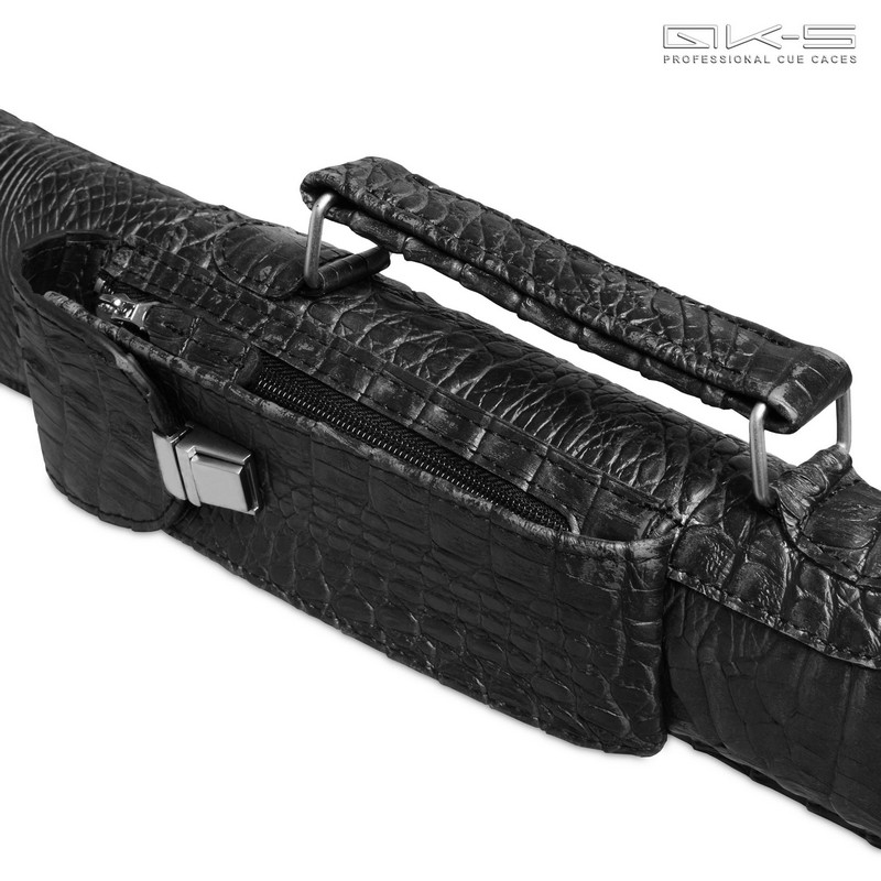 Обладая лаконичным содержанием по функционалу, тубус QK-S Tomahawk привлекает к себе внимание достойным качеством исполнения всех деталей. В фурнитуре использованы простые, надежные и в то же время стильные металлические элементы: замки портфельного типа, скобы для крепления ручки и наплечного ремня, кнопки для регулировки длины ремня для переноски. Боковая часть наружного кармана снабжена дополнительно замком-"молнией". Части конструкции тубуса надежно соединены между собой качественной строчкой с применением высокопрочной нити, контуры аккуртно обработаны виниловой кромкой. Для дополнительной фиксации кия внутри тубуса предусмотрен чехол с затягивающимся шнурком, фиксирующимся в закрытом состоянии при помощи пластиковой клипсы.