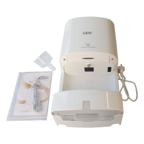 Автоматический дозатор GESS uSteriАвтоматический сенсорный диспенсер для антисептика обеспечивает высокий уровень гигиены. Устройство предназначено для бесконтактной дозировки жидкого антисептического средства. Прибор удобен в использовании – дозатор автоматически приводится в действие при приближении рук. Для того, чтобы получить порцию средства, нужно всего лишь поднести руку к верхней части диспенсера, где расположен специальный инфракрасный датчик. Усовершенствованная система управления обеспечивает стабильную работу устройства. С задней стороны диспенсера имеется ручка для регулировки дозирования антисептика. По умолчанию за 1 секунду устройство распыляет от 1 мл дезинфицирующего средства. Максимальный объем распыления 60 мл за минуту. Диспенсер оснащен функцией автоматической остановки через 1 минуту распыления. Объем: 2200 мл. Объем дозирования: 1-10 и 60 мл. При первом использовании поместите руку к отсеку распыления несколько раз для удаления воздуха из контура устройства.