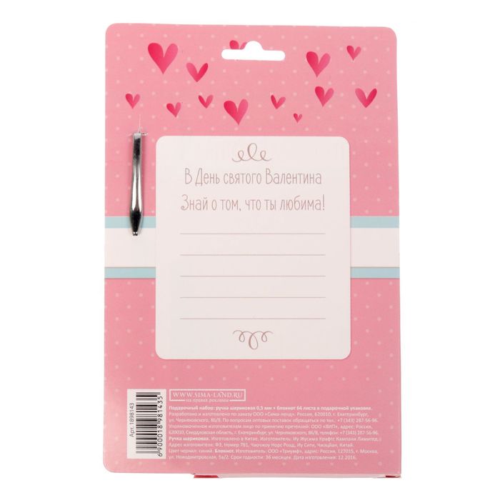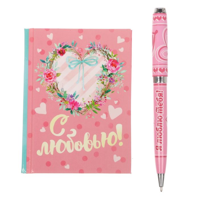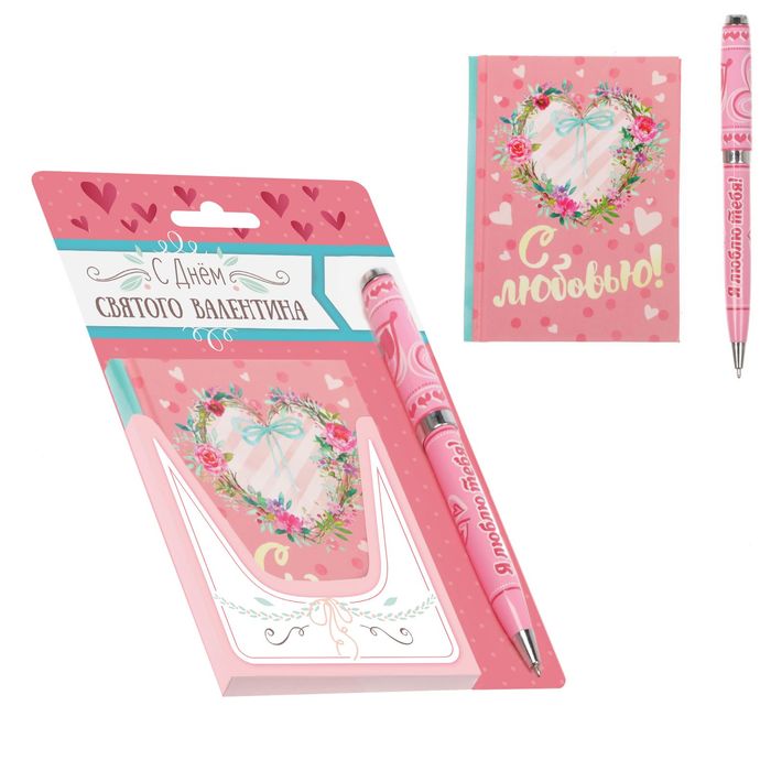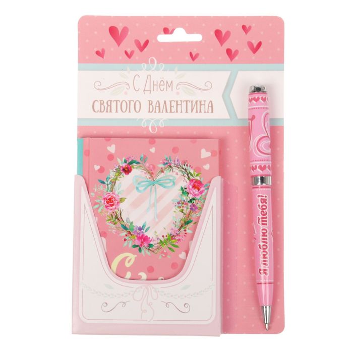 Подарочный набор "С днём святого Валентина": блокнот в твёрдой обложке, А7, 64 листа и металлическая ручка
