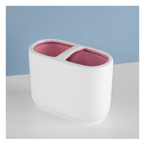 Практичный и современный стакан для щеток имеет разделитель, благодаря чему в нем можно равномерно расположить несколько зубных щеток. Керамическая поверхность изделия всегда буде выглядеть безупречно, если чистить ее мягким щадящим моющим средством и губкой.