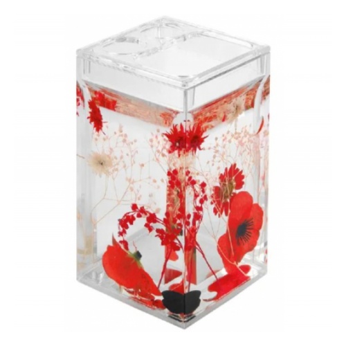 Яркий красный стакан для зубных щеток сделает интереснее интерьер любой ванной. Полимерный материал акрил, из которого сделана данная модель, отличается ударопрочностью и долговечностью. В качестве наполнения использованы минеральное масло, натуральные или искусственные компоненты.
