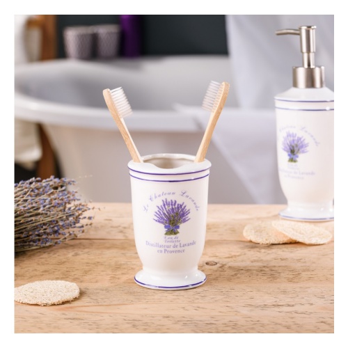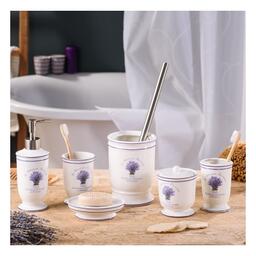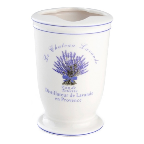 Элегантный стакан для щеток с разделителем - полезное и удобное приобретение для ванной. Оно прекрасно дополняет интерьер, так как оно украшено рисунком с букетом лаванды и напоминает по форме вазу. Изделие выполнено из керамики, поэтому для сохранения эстетичного внешнего вида рекомендуется протирать его влажной мягкой салфеткой.