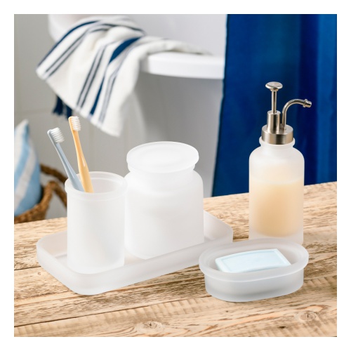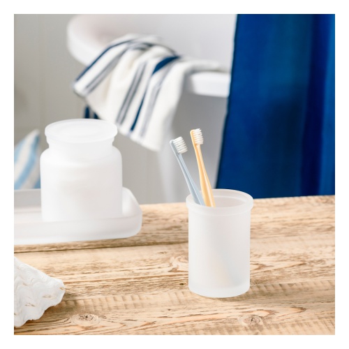 Стакан для зубных щеток из матового стекла - стильный элемент коллекции Maritime. Большой объем и широкое основание позволяет свободно размещать в стакане несколько зубных щеток, а также использовать его для косметических кистей и иных предметов. Универсальный дизайн отражает яхтенную тематику и аристократическую сдержанность, что делает стакан идеальным дополнением остальной коллекции - ковриков и занавесок для ванной, полотенец и настольных аксессуаров.