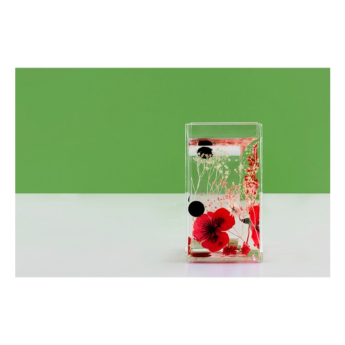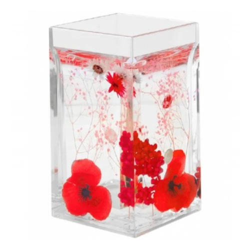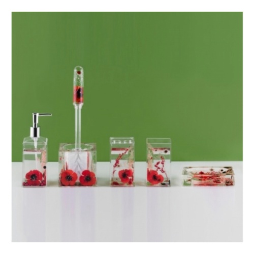 Яркий букет из маков расцвел внутри прозрачного стакана для щеток. Декоративные элементы размещены в минеральном масле, поэтому они выглядят очень естественно и объемно. Сохранить привлекательный внешний вид изделия на долгое время поможет регулярный уход при помощи мягкой ткани и щадящих моющих средств.