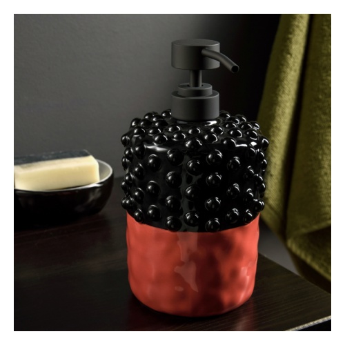 Керамический дозатор для жидкого мыла объемом 0,6 л. Носик-дозатор удобен в использовании, легко открывается для замены содержимого емкости. Большой объем позволяет использовать дозатор не только для жидкого мыла, но и для шампуней, геля для душа, бальзама.
