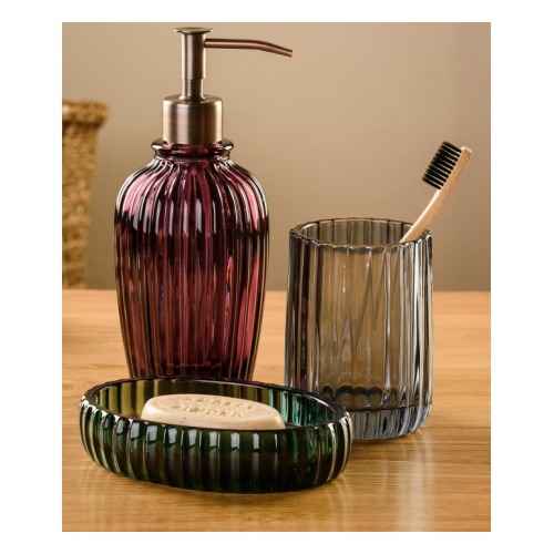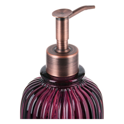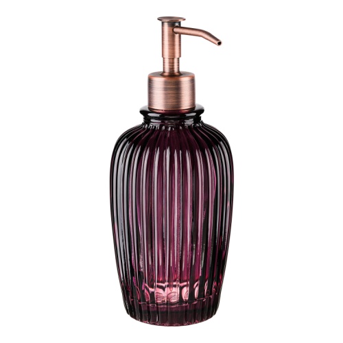 Стеклянный дозатор для жидкого мыла со съемной насадкой. Большой объем позволяет использовать емкость также для шампуней, геля для душа, бальзама. Фиолетовый оттенок силикатного стекла близкий к природному поддерживает этническую концепцию и делает изделие гармоничным дополнением остальных элементов коллекции - настольных аксессуаров, занавесок и ковриков для ванной, полотенец.
