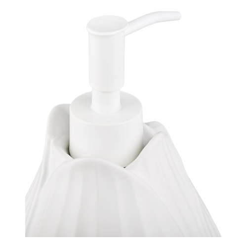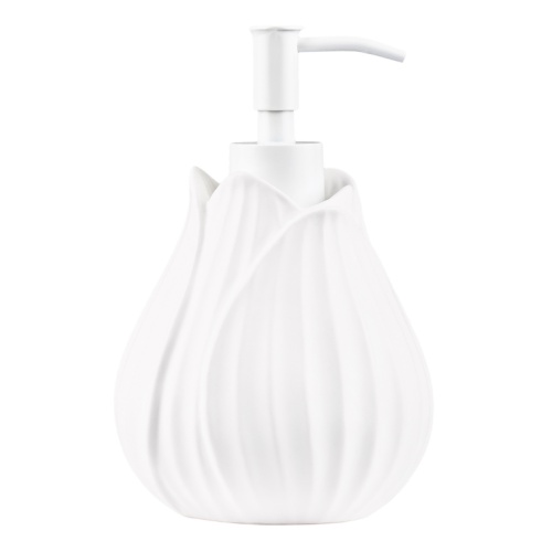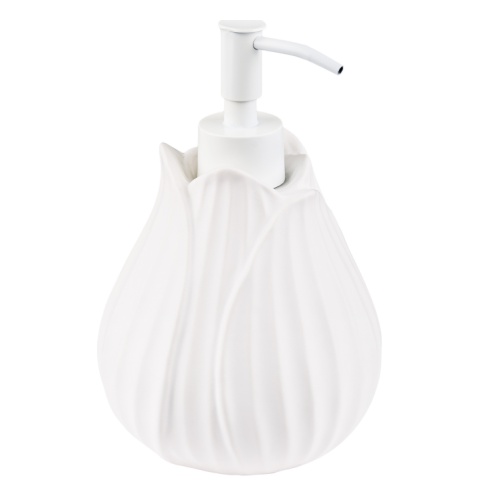 Дозатор для жидкого мыла из керамики. Большой объем позволяет использовать его также для шампуней, бальзамов и геля для душа. Уникальная форма нераскрывшегося цветочного бутона поддерживает общую концепцию коллекции Fleur и делает изделие гармоничным дополнением остальных элементов коллекции - настольных аксессуаров, ковриков, занавесок для душа и полотенец.