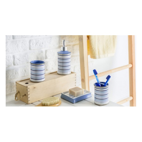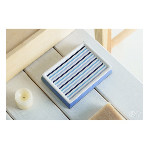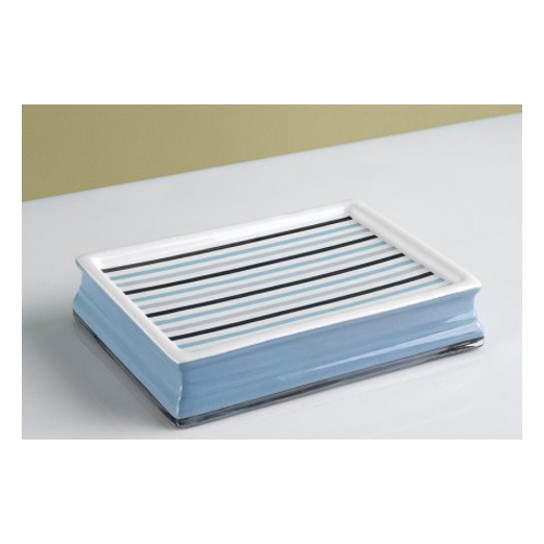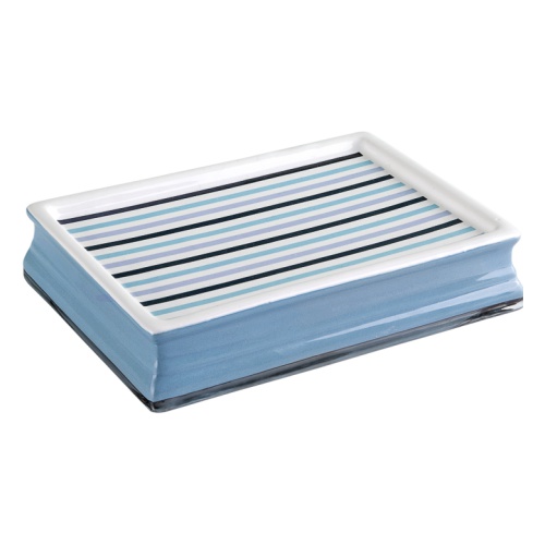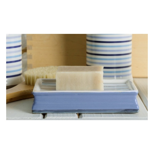 Полосатая мыльница из керамики - настоящая находка для ванной комнаты, выполненной в бело-голубых тонах. Уход за изделием совсем не сложный - ее достаточно мыть мягкой салфеткой и щадящим моющим средством.