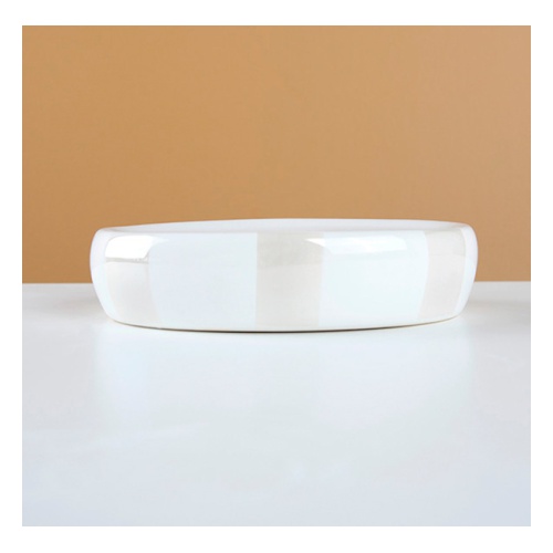Белая мыльница с покрытием деколь имеет приятный перламутровый блеск. Для сохранения эстетичного внешнего вида изделия рекомендуется уход с помощью мягкой салфетки и мыльного раствора.