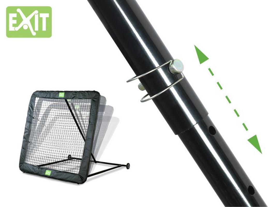 Габариты футбольного тренажера Exit - 164х164 см, это очень удобный для тренировок размер. Наклон тренажера может быть установлен между 35° и 90°. С такими возможностями тренажер подходит для всех видов обучения. Регулировка угла осуществляется очень просто, при помощи металлического стержня, фиксирующего заднюю опорную стойку. Изменить наклон можно очень быстро, если вы захотите играть в другую игру или заниматься другим упражнением.