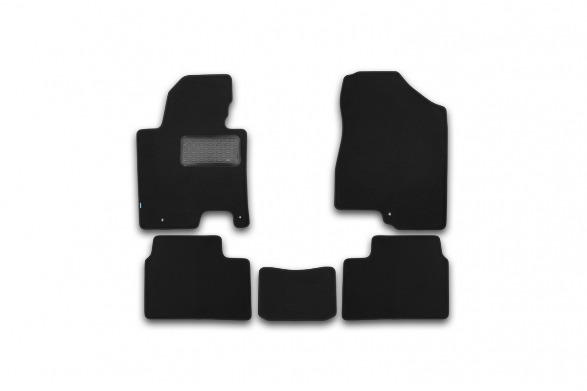 На коврике со стороны водителя предусмотрен подпятник из полиуретана. Изделия просто устанавливаются, надежно фиксируются и плотно прилегают к поверхности. Текстиль легко очищается щеткой и водой с мыльным раствором.