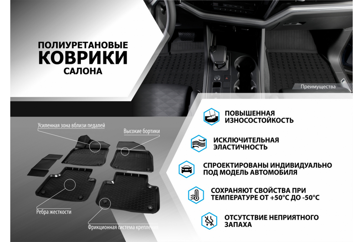 Коврики в салон автомобиля Rival для Kia Sportage IV 2016-2018 2018-н.в., полиуретан, без крепежа, 5 шт., 12805003
