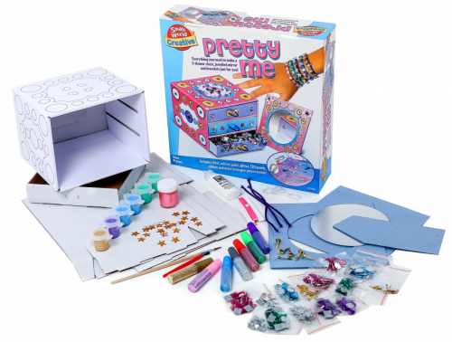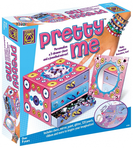 Набор для украшения CREATIVE-TOYS-LTD 5188 предназначен для девочек младшего и среднего возраста. Знаменитый израильский бренд Creative создает детские игрушки и наборы для творчества уже несколько десятков лет. Все материалы, из которых сделаны изделия, проходят тестирование, обязательную сертификацию и отвечают высоким требованиям безопасности. Компания использует в производстве современные технологии и инновационный подход. Данный комплект разработан для того, чтобы развить в ребенке творческое начало, аккуратность и усидчивость при работе с мелкими деталями, а также получить удовольствие от игры с яркими и красочными предметами. С помощью этого набора ребенок сможет сам создать и раскрасить детский комод для украшений с ящичками, настольное зеркало на подставке, а также проявить фантазию и сделать много разнообразных браслетов или ожерелий. В комплект набора входят: картонные заготовки, круглое зеркало, клейкая лента, 320 разноцветных камней для поделок и украшений, 6 зажимов из металла, 7 видов блесток различных оттенков, кисточка, нетоксичные краски и клей, цветные шнурки, атласная лента и эластичная нить.