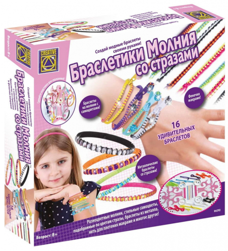 С помощью товара для детского творчества CREATIVE-TOYS-LTD 6090 «Браслетики Молния со стразами» ребенок сможет придумать и реализовать 16 стильных браслетов. Это могут быть изделия из металла, украшенные стразами, или браслеты на молнии — создавайте уникальные изделия или вдохновляйтесь картинками, размещенными производителем на наборе.Но это еще не все: сделайте удобную подставку, которая соберет на себе все новые украшения! Для этого нужно только воспользоваться двумя заготовками из картона, которые идут в комплекте, подобрать к ним красивые камешки, и получить драгоценное дерево! Товар для детского творчества CREATIVE-TOYS-LTD 6090 «Браслетики Молния со стразами», который завоевал популярность во всем мире, произведен из нетоксичных материалов высокого качества. На всех производственных этапах процессы строго контролируются, поэтому каждый комплект безопасен для вашего ребенка.